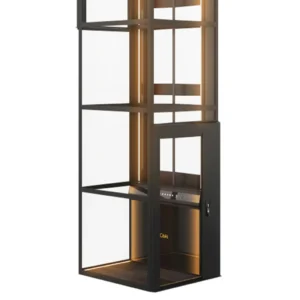 A platform lift with a futuristic design that harmonizes effortlessly with any architectural style.