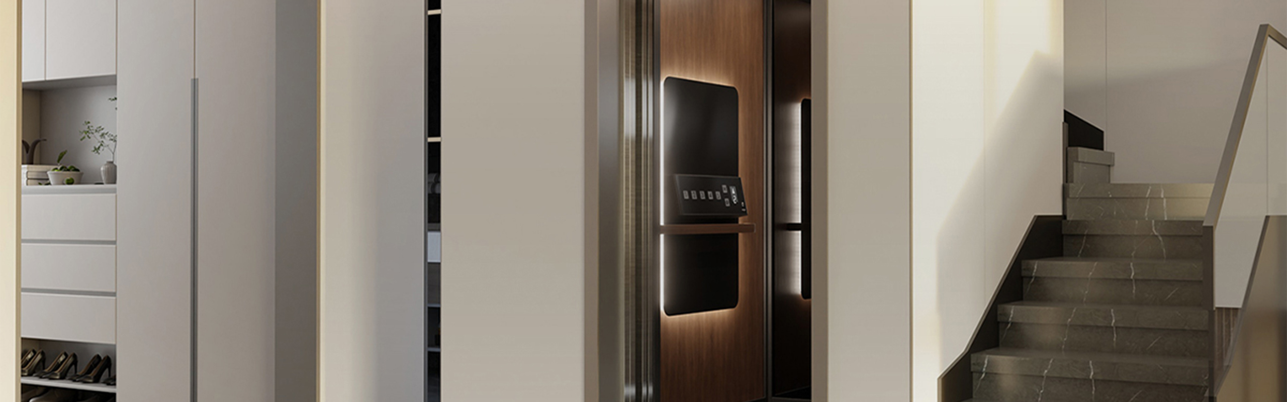 The Essence features sleek, modern controls designed for effortless use. A digital floor indicator screen and a natural wood-finished handrail combine style and function, enhancing the cabin’s aesthetic.